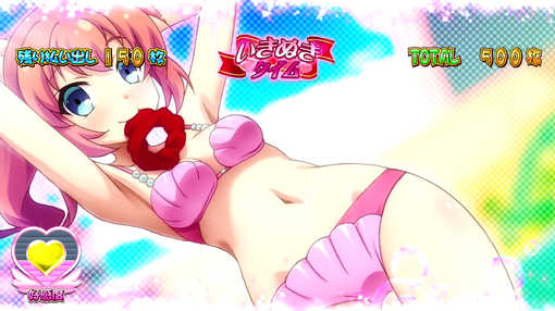 獲得枚数は約100枚で、消化中は選択ヒロインの水着姿を堪能できる。