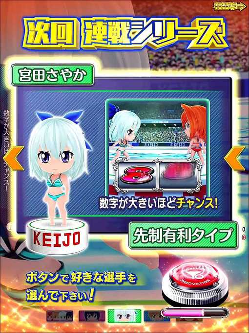 最終的に自キャラクターが勝利すれば大当り!? また、勝利できなくても連戦シリーズが継続する。
