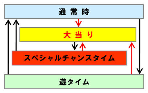 出玉のカギとなる電サポ付きST10回転+時短(20or40or259回転)の「スペシャルチャンスタイム」は、全ての大当り後に突入。