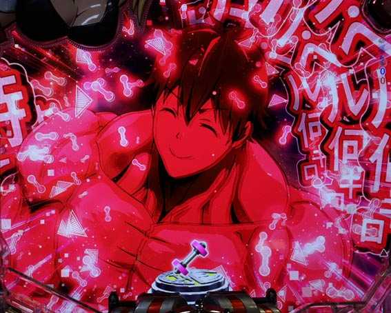 画面左下のプロテインシェイカーが動き出すと大当りのチャンス。 | 最終的にプロテインシェイカーから図柄が飛び出せば大当り。図柄の色が赤なら10R以上となる。 |