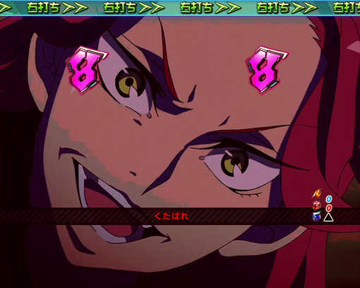 保留が4つ貯め終わった後にPUSHボタン連打で背景パネルの色が変化。色は白色、青色、緑色、赤色、虹色が存在し、赤色だと期待度 約53.5%で大チャンス。虹色と白色の場合大当り濃厚。