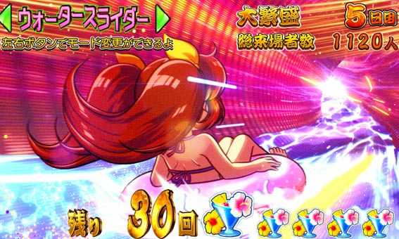 いきなり図柄が揃う演出。ウォータースライダーモードでも発生する。 | 旦那がシャッターを完全にこじ開ければ大当りとなる。 |
