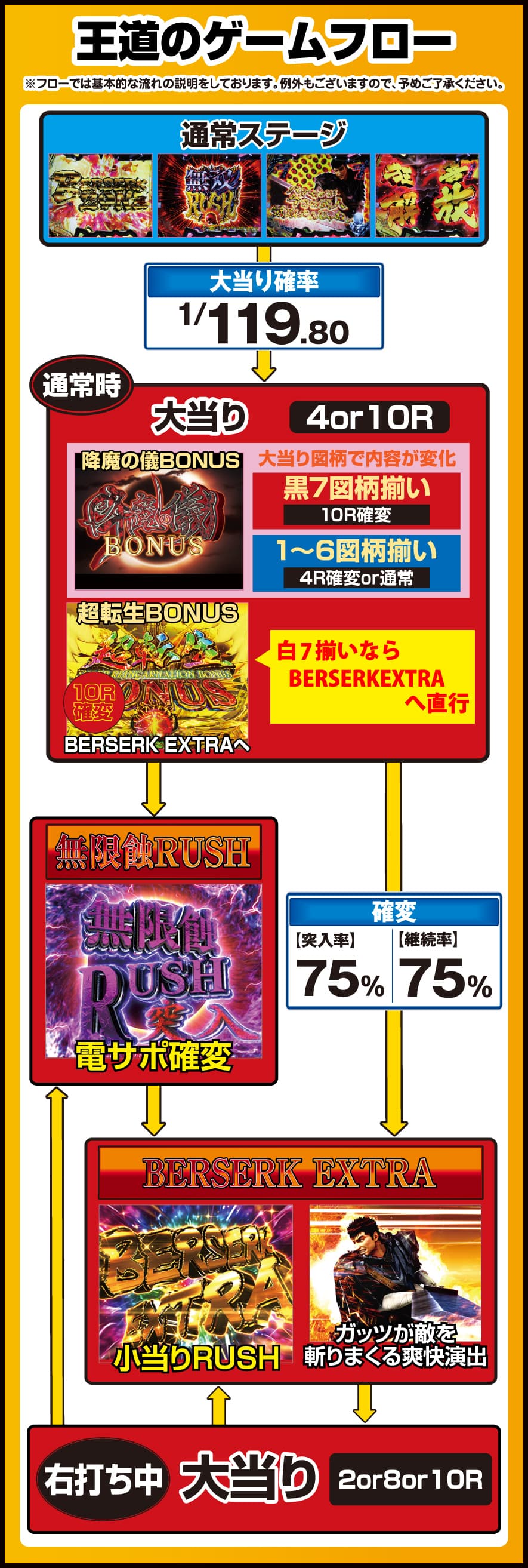 | 10R確変 | 25% | 終了後、BERSERK EXTRAへ (電サポ次回まで) |