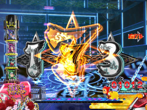 残り時間が0秒になる前に図柄が揃えば大当り濃厚。継続率は約82%で、大当り時は約550発獲得可能となっている。