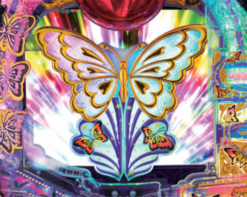 なお、初回大当り後は必ず電サポ付きST16回転+時短(4or24回転)の超蝶チャンスへ突入。その滞在中に大当りを引き当てることが電サポ付きST16回転+時短84回転の超蝶チャンス突入への必須ルートとなる。