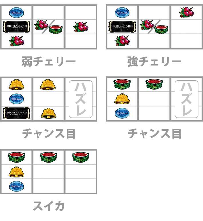 ナビなし時に左リールがスイカまでスベった場合はチャンス目濃厚かつ上乗せ濃厚となる。ナビなし時はスイカの可能性ナシ。