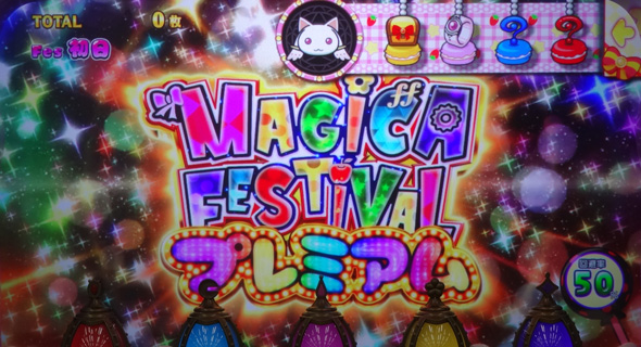 | まどかマス | 液晶上は宝箱or指輪orまどか 取得で「マギカフェスティバルすぺしゃる」or「マギカフェスティバルプレミアム」に移行 当該でレア小役成立時は「マギカフェスティバルプレミアム」への移行が濃厚 |