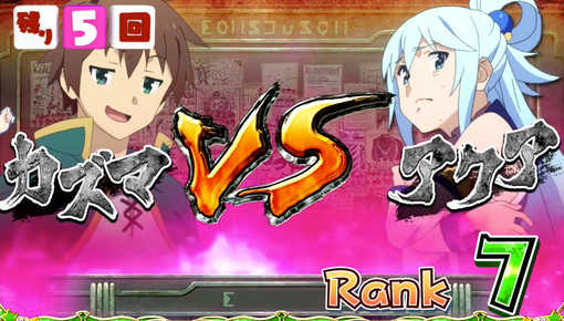 1巡目は「アクア⇒めぐみん⇒ダクネス⇒ウィズ⇒ゆんゆん⇒クリス(エリス様)」の順にキャラクターが変化し、最大6回の挑戦が可能。
