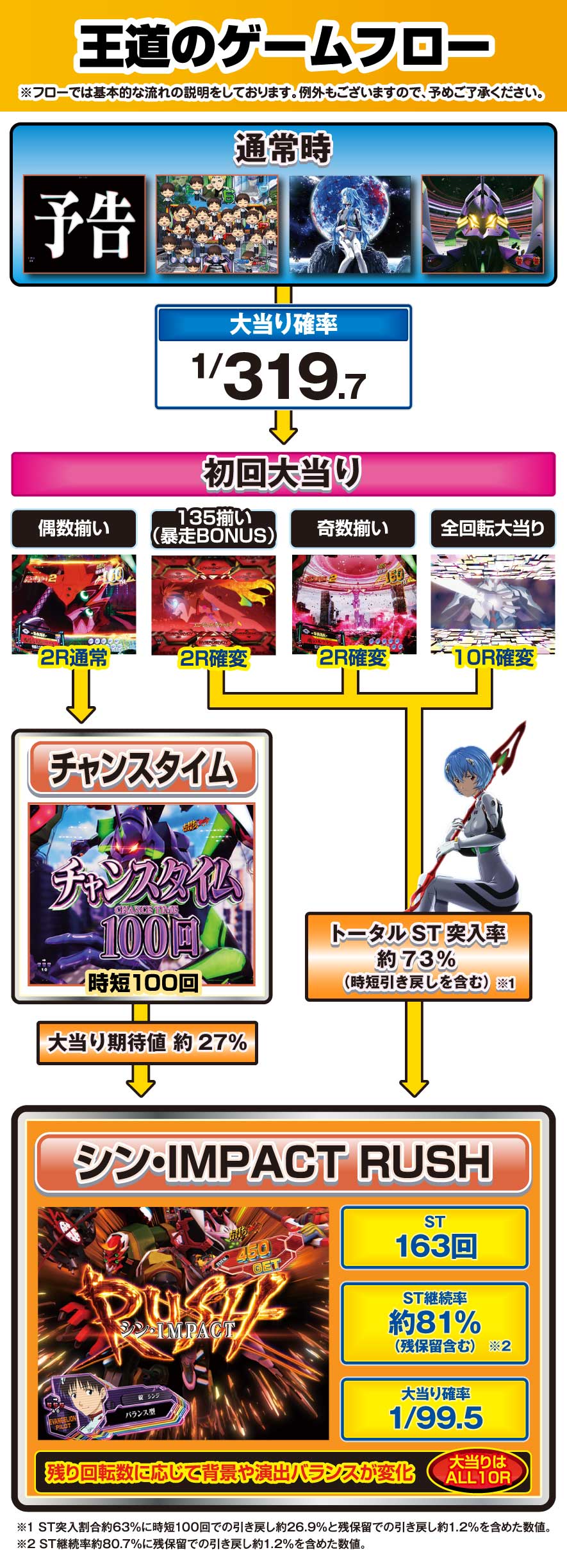 | 10R確変 | 100% | 終了後、シン・IMPACT RUSHへ (ST163回転) |