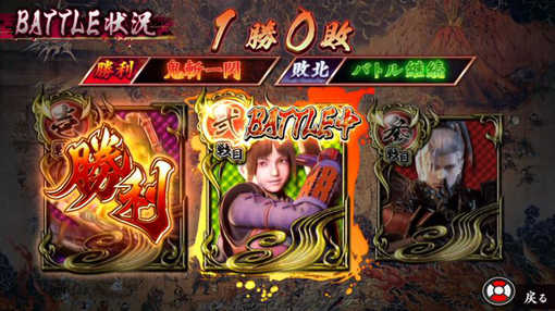 1ゲーム約3枚純増のAT。勝ち越す限り継続する、3対3の鬼バトルシステムで展開される。
