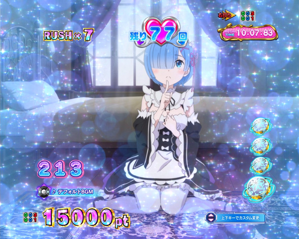 | ノーマルリーチ | 連続予告×3のノーマルリーチは図柄送りが長ければ期待大 「私の名前はただのエミリア予告」or「大兎群予告」のどちらかが発生する (メリハリモードを除く) |