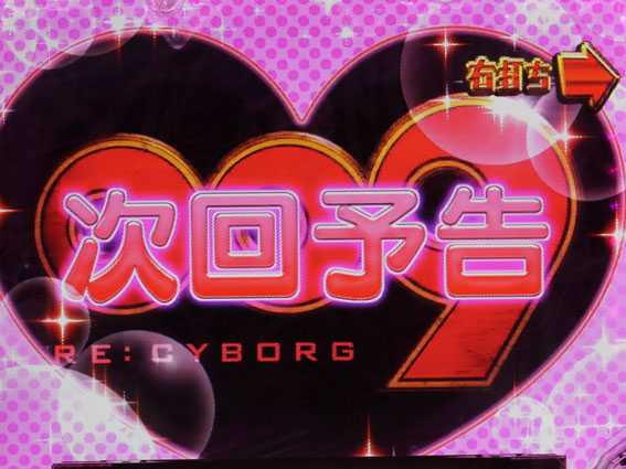 リーチ中にサブ液晶のタイトルの色が変わるとチャンスアップ。 | サブ液晶から009が飛び出してくれば信頼度大幅アップ! |