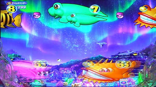 演出面では、「新海物語」シリーズの主役である「カメ」が大活躍。役物や図柄の動きでチャンスを演出する。