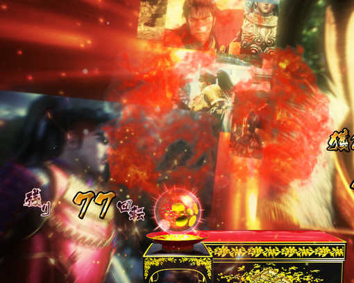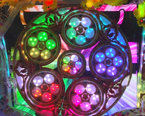 演出面では、「極大星梅鉢役物」を始め、「真・大太刀役物」「真・皆朱槍役物」「真・桜花役物」といった多彩な役物を搭載している。