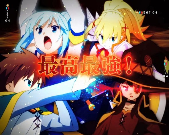 | 初当り時に必ず突入するモード。 消化中の大当りの0.5%、または残保留4回転の大当りの約88.6%でラッキートリガーである上位ST「祝福RUSH」へ突入する。 消化中は4種類の演出モードから選択可能。 ・カズマ ・アクア ・めぐみん ・ダクネス このすばRUSHの継続期待度は約70%。 このすばRUSH+祝福RUSHの合算継続期待度は約75.4%。 |