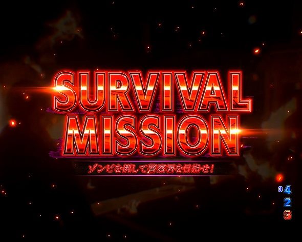 | HAZARD RUSH PREMIUM後やSURVIVAL CHANCE中の大当り後から突入する上位モード。 ラウンド中に4種類の演出モードから選択可能。 ・爽快にゾンビを撃破していく「HAZARD RUSH XTREME」 ・パトランプが光れば大当り濃厚「ラクーン君告知-パトランプ-」 ・ボタンバイブが発生すれば大当り濃厚「ラクーン君告知-ボタンバイブ-」 ・扉の奥から図柄が出現すれば大当り濃厚「扉告知」 HAZARD RUSH XTREMEの継続期待度は約87%(※1)(※4)。 |