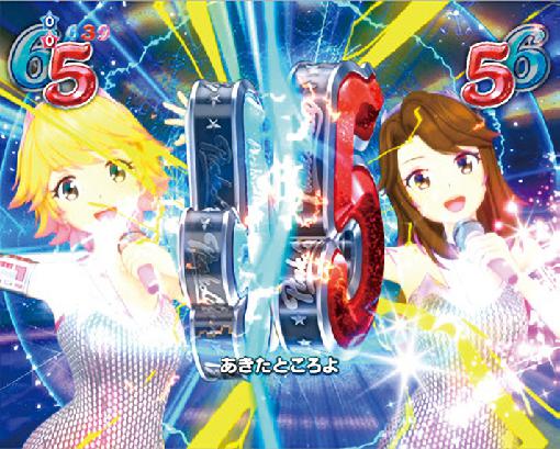 「確変LIVEモード」中は全6曲のLIVEチャンスリーチに注目で、曲を歌いきれば大当りとなる。