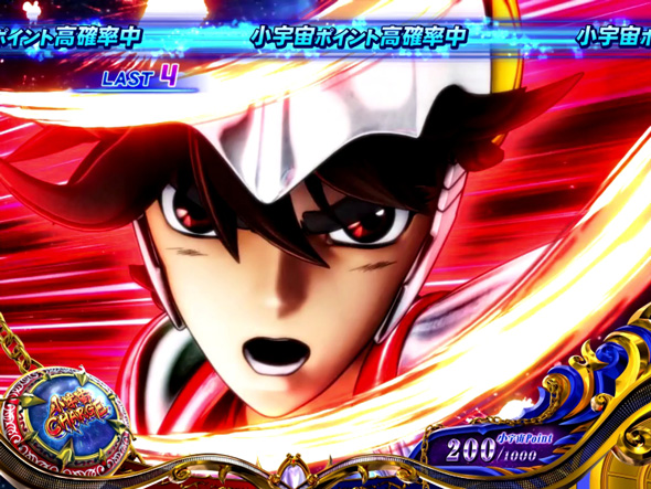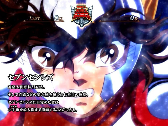 | バトルを最大3回突破できればAT「聖闘士RUSH」濃厚 バトル継続率は50%or60%or70%or80%or99% (継続率はGBレベルを示唆) |