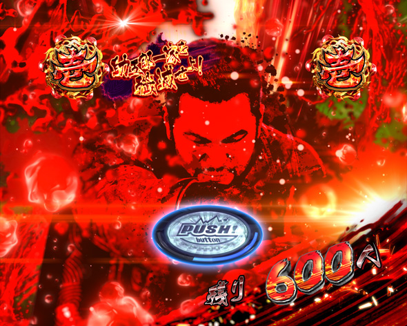 | 超ぶった斬りBONUS後やぶった斬りBONUSでの演出成功後に突入するモード。 消化中大当りの約7%で、ラッキートリガーである上位RUSH「神速一閃モード」に移行する。 竜騰虎闘モードの継続期待度は約75%(※2)。 |