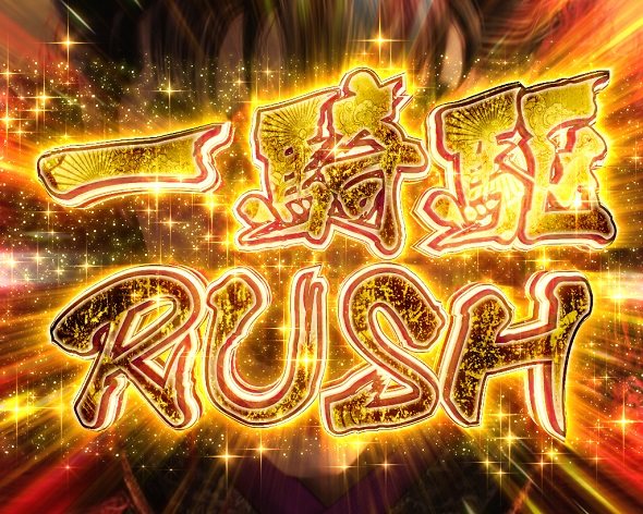 | 初当り後に必ず突入するモード。 RUSH中に大当りすれば上位RUSH突入濃厚となる。 RUSH中は4種類の演出モードから選択可能。 ・一騎駆RUSH ・花傾奇RUSH ・本舞台RUSH ・沖パチRUSH RUSHの引き戻し期待度は約42%。 |