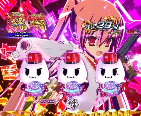 HYPER SCARLET GOD BONUS後の一部やLBR・チャンスタイム中の大当り後に突入する上位モード。 一度移行すればLBRへの転落はなし。