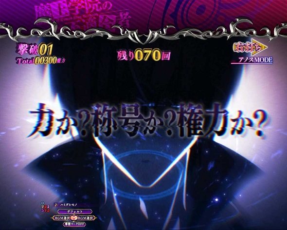 3種類の演出モードから選択可能。 ・スタンダードタイプの「魔王軍バトルMODE」 ・ユーザー参加&告知タイプの「ミーシャ♥サーシャMODE」 ・変則当りタイプの「アノスMODE」