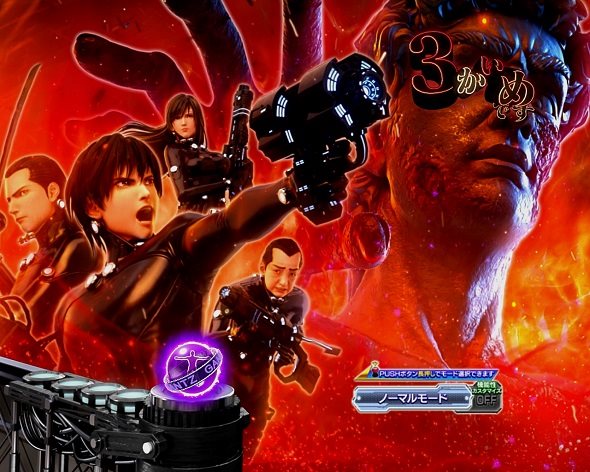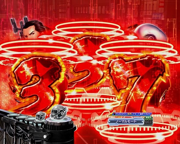 | GANTZチャンス中の大当り後に突入する上位モード。 消化中の図柄揃い大当り時は出玉1000個以上濃厚となる。 覚醒GANTZ RUSHの継続期待度は約77%。 |